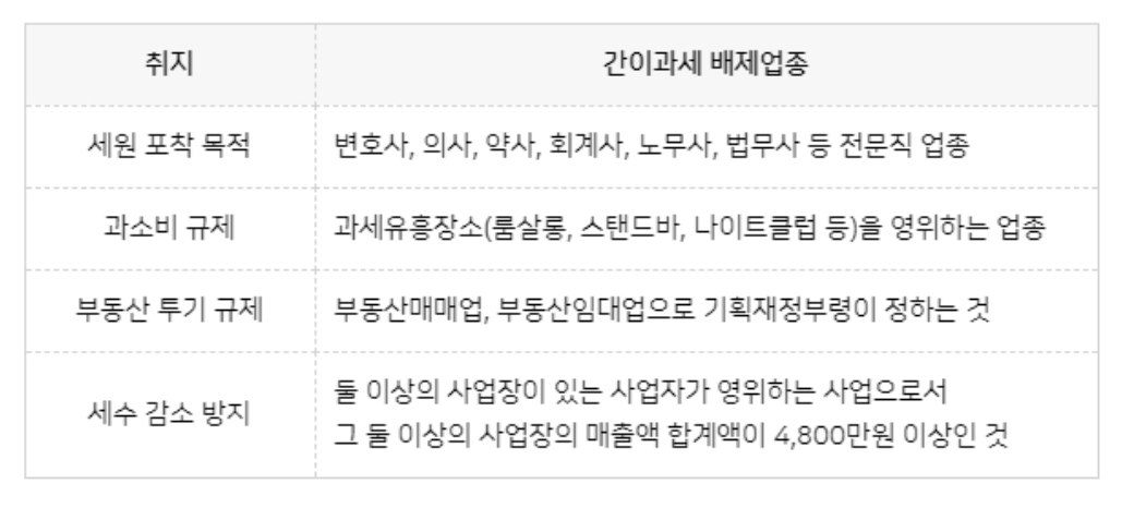 <간이과세 배제업종>