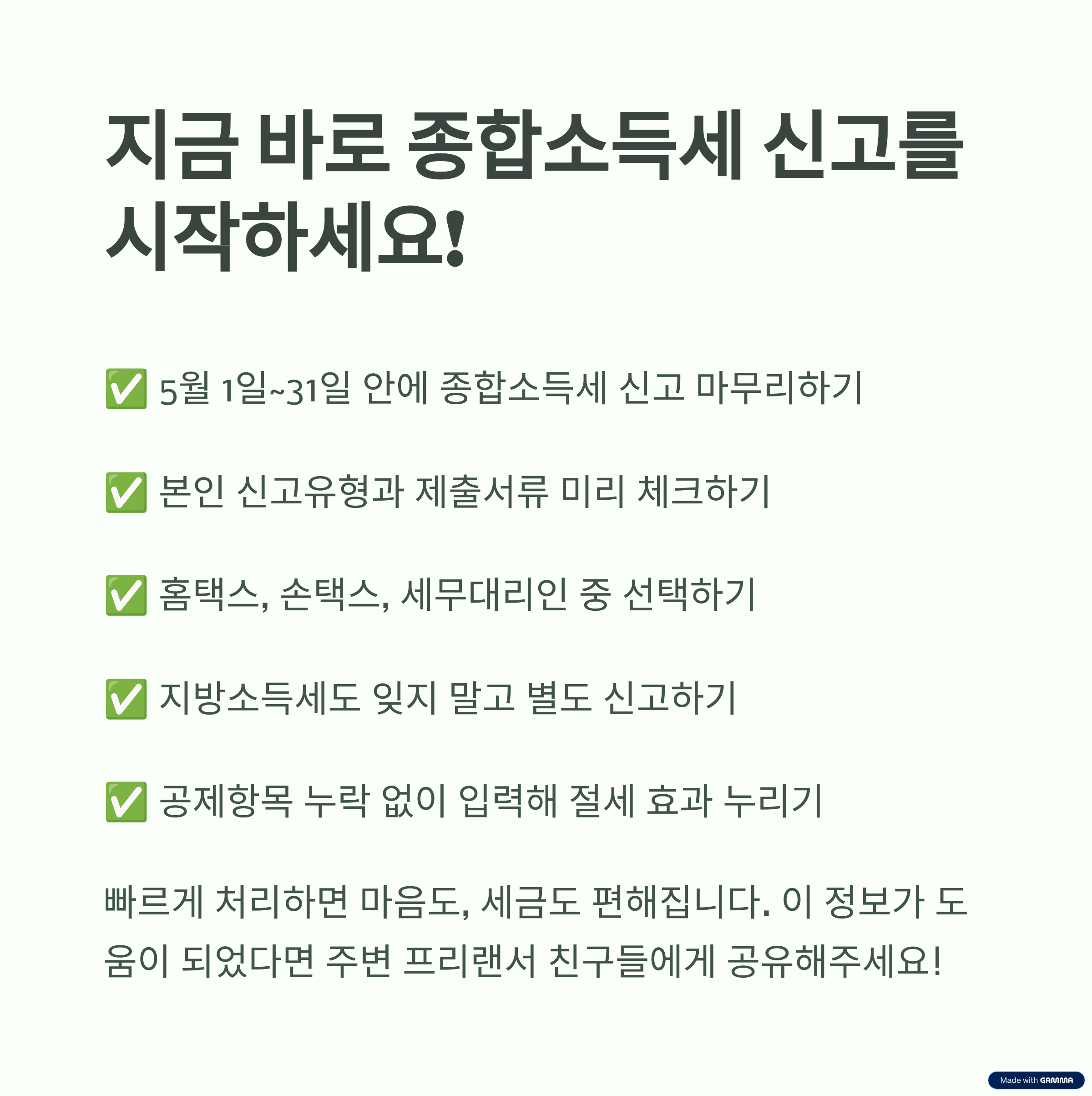 ✅ 5월 1일~31일 안에 종합소득세 신고 마무리하기