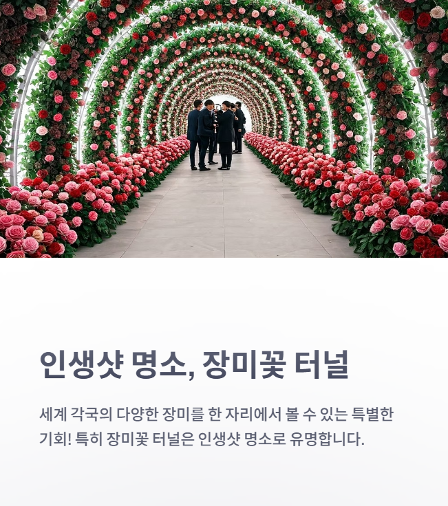 | 특징 | 1,004종 장미, 수억만 송이, 야간 조명 운영 |